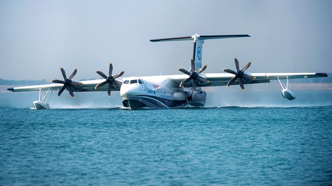 “AG600大型水陸兩棲飛機(jī)這次驗(yàn)證了水上起飛、空中飛行、水上降落能力,圓滿(mǎn)完成了水上首飛重大里程碑科目,在研制進(jìn)程中又邁出了堅(jiān)實(shí)的一步?!敝袊?guó)航空工業(yè)集團(tuán)有限公司董事長(zhǎng)譚瑞松說(shuō)。