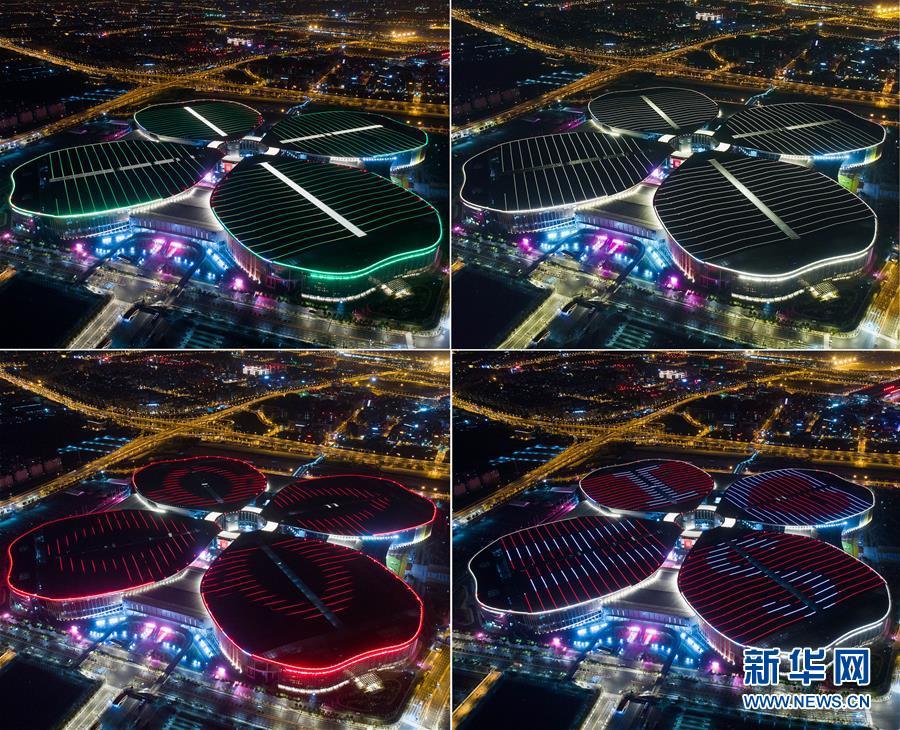 首屆中國國際進口博覽會將于11月5日至10日在上海舉行。夜幕下的國家會展中心(上海)燈光璀璨,流光溢彩,靜待八方賓客。
