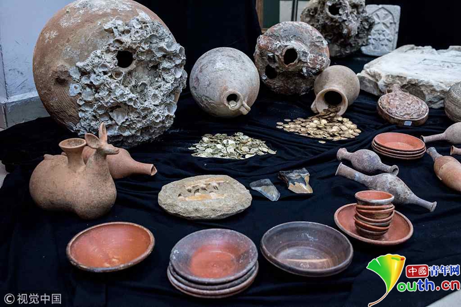中國青年網(wǎng)北京10月21日電 當?shù)貢r間2018年10月19日,土耳其伊斯坦布爾,繳獲的走私文物在伊斯坦布爾展出。以伊斯坦布爾為主的安全委員會展開打擊文物走私行動,取得歷史性收獲,在全國12個省份繳獲了攻擊1.4萬件文物,其中包括金幣、羅馬時期的墓碑、呂底亞銀幣、拜占庭硬幣以及羅馬時期的劍等。圖片來源:視覺中國