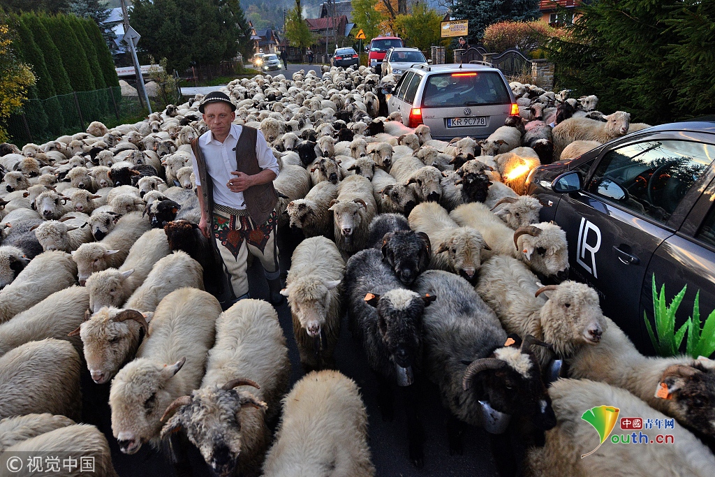 牧羊人趕著羊群走下波蘭南部喀爾巴阡山,他們要走20英里才能回到農場。