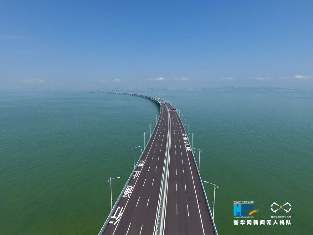 圖為新華網(wǎng)無(wú)人機(jī)隊(duì)航拍港珠澳大橋。新華網(wǎng) 伍嘉煒 攝