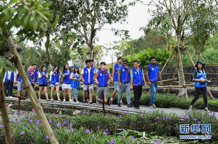 在??谑忻郎岷峪P翔濕地公園,參加濕地保護(hù)志愿服務(wù)講解員培訓(xùn)的留學(xué)生志愿者一邊參觀一邊聽中國志愿者講解(10月21日攝)。 ??谑续P翔濕地公園內(nèi)流水潺潺,綠草如茵。很難想象,這個(gè)市民游客休閑散步的好去處、具有強(qiáng)大污水凈化功能的濕地公園,兩年前還是臭氣熏天、人們避之不及的垃圾堆填場(chǎng)。 把生態(tài)文明建設(shè)放到更加突出的位置,近兩年來??谑幸詽竦爻鞘薪ㄔO(shè)為突破口,不斷創(chuàng)新城市生態(tài)治理,著力改善生態(tài)民生,在生態(tài)文明建設(shè)上闖關(guān)探路。 新華社記者 楊冠宇 攝
