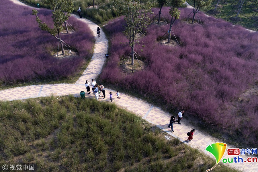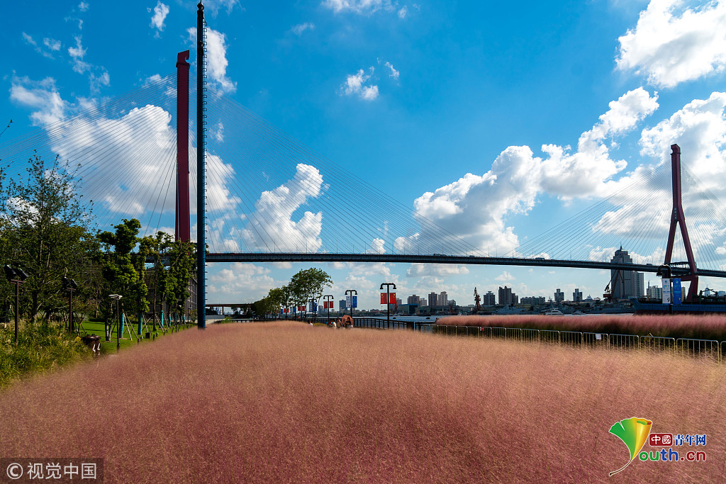 上海楊浦濱江粉黛亂子草成片盛開 美不勝收
