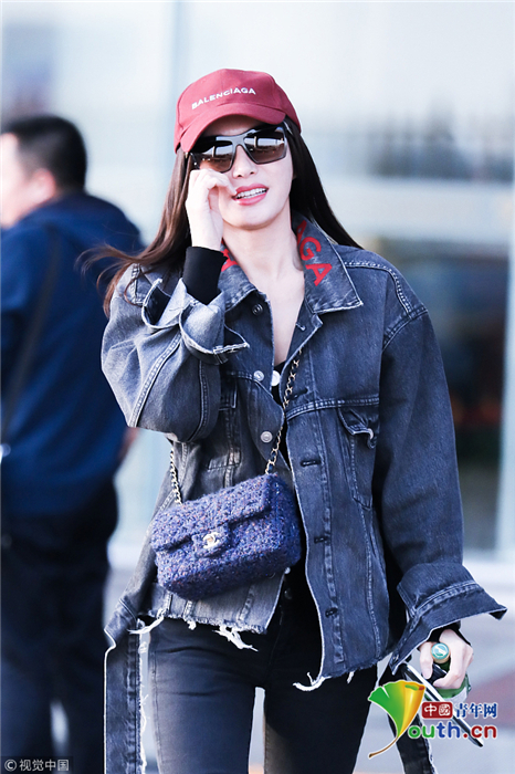 2018年10月24日,北京,“富察皇后”秦嵐現(xiàn)身機場。她頭戴小紅帽,身穿黑色緊身褲顯美腿筆直修長,上身穿著牛仔外套青春逼人,邊走邊甜笑玩“撩發(fā)殺”,靚麗吸睛。