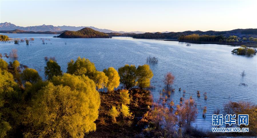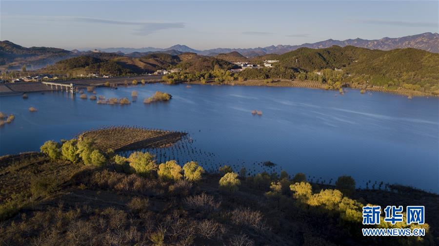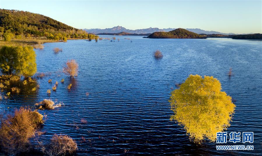 金秋時(shí)節(jié),北京密云水庫沿岸樹林逐漸變黃,山水相映,恬淡寧靜。 新華社記者陶明攝