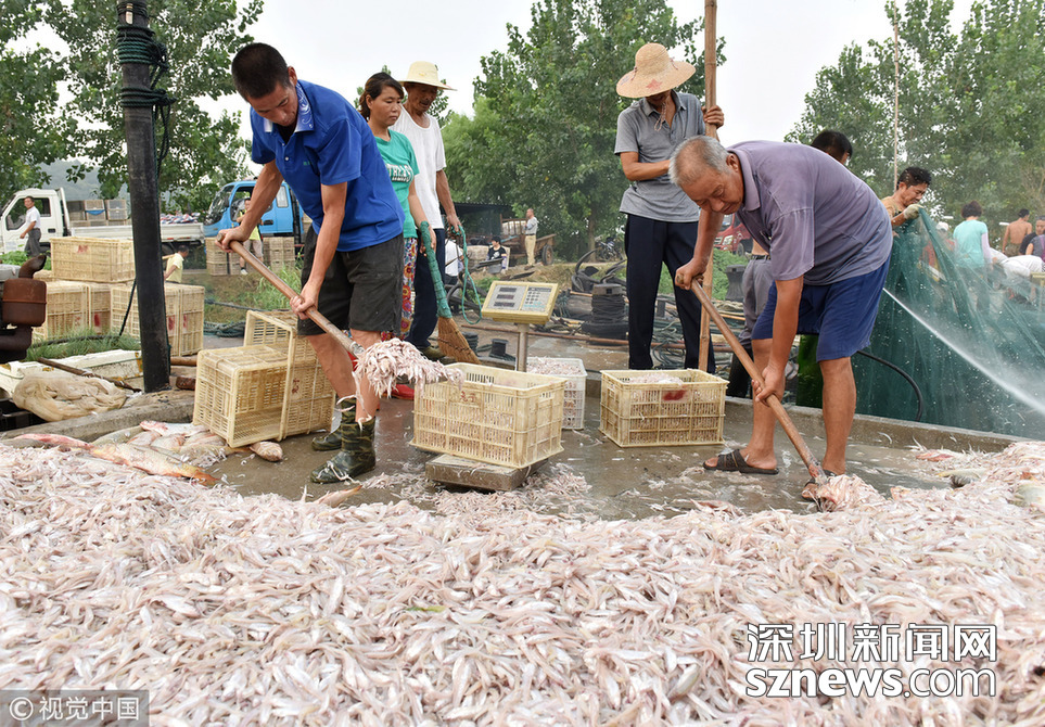 2018年8月16日,安徽巢湖漁民正在裝運(yùn)捕撈上來的毛魚和銀魚。