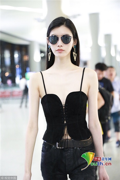 2018年7月25日,上海,奚夢(mèng)瑤現(xiàn)身機(jī)場(chǎng),她穿吊帶馬甲配過(guò)膝長(zhǎng)靴,頻撩發(fā)似女特工。