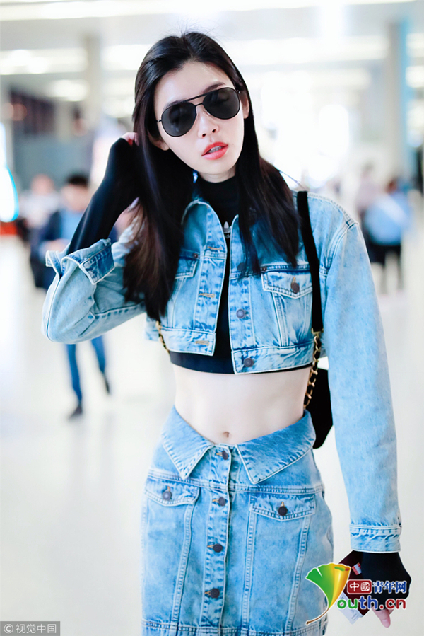 奚夢瑤一身帥氣牛仔裝 露細腰長腿顯 ...