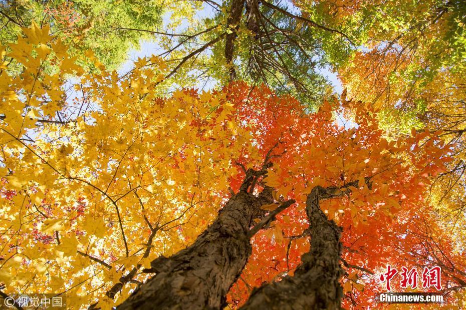 深秋時節(jié),山東濟南楔子山山脊兩邊種植的植被形成“一山雙色”景觀,令人稱奇。