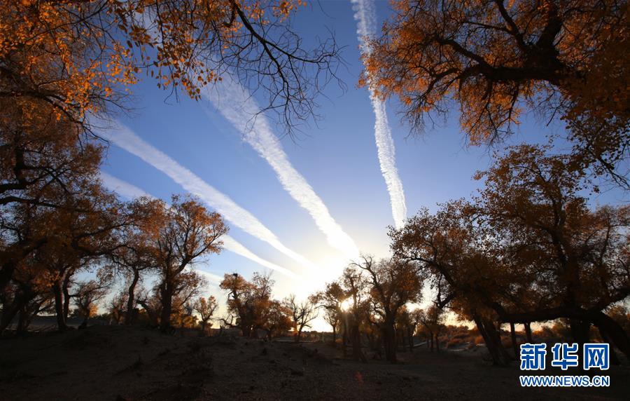 中國青年網(wǎng)北京10月9日電 2018年10月7日至8日,內(nèi)蒙古自治區(qū)阿拉善盟額濟納旗,地處巴丹吉林沙漠。額濟納河兩岸壯觀的胡楊林堪稱大漠的一顆綠色明珠,每年深秋時節(jié)的第一場秋霜過后,大片的胡楊樹葉由綠變黃,一眼望去,陽光下金色的樹葉襯著湛藍的天空于風中婆娑起舞,鮮明的影調(diào),亮麗的色彩,令人流連忘返。