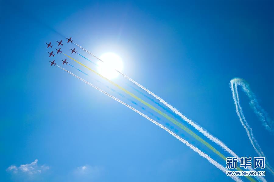 11月6日,中國空軍八一飛行表演隊在航展現(xiàn)場進行飛行表演。當日,第十二屆中國國際航空航天博覽會在珠海開幕。 新華社記者楊光攝