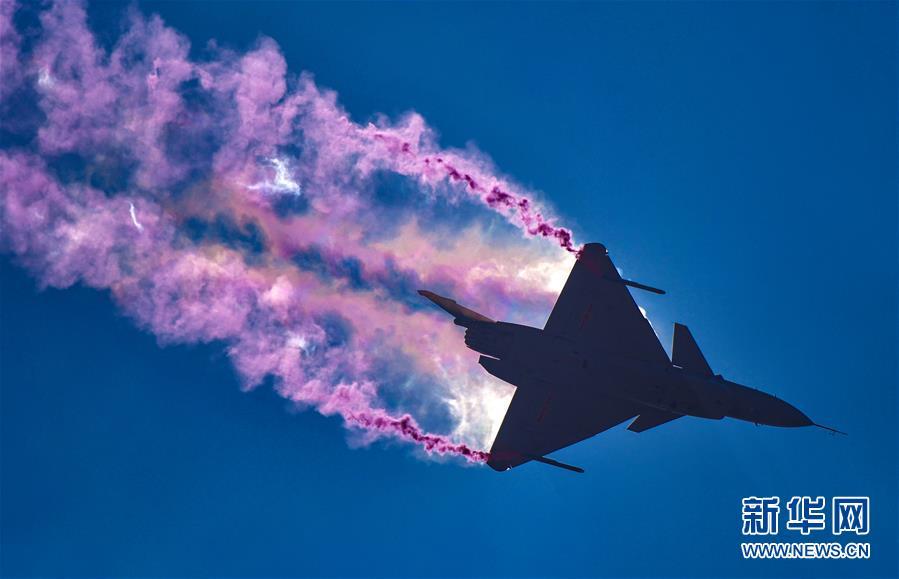 11月6日,殲-10B在飛行表演中。 新華社記者楊光攝
