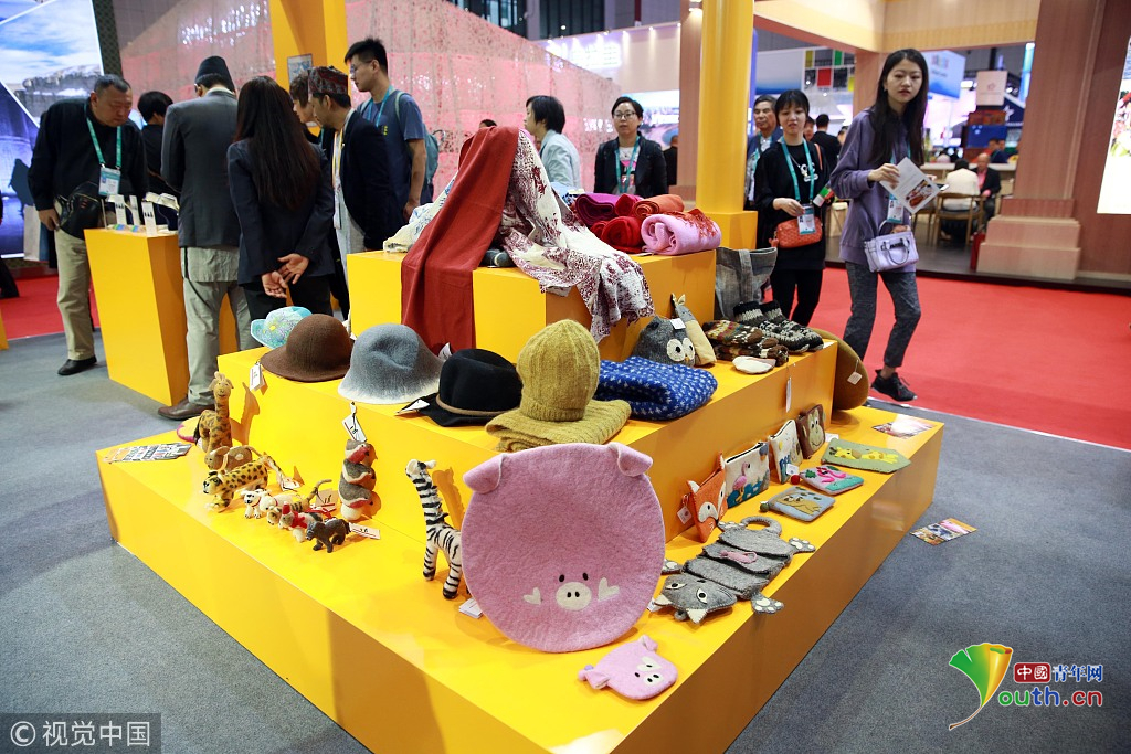 2018年11月6日,上海,首屆中國(guó)國(guó)際進(jìn)口博覽會(huì)國(guó)家展上,共有82個(gè)國(guó)家、3個(gè)國(guó)際組織設(shè)立了71個(gè)展臺(tái)。尼泊爾館。視覺(jué)中國(guó)