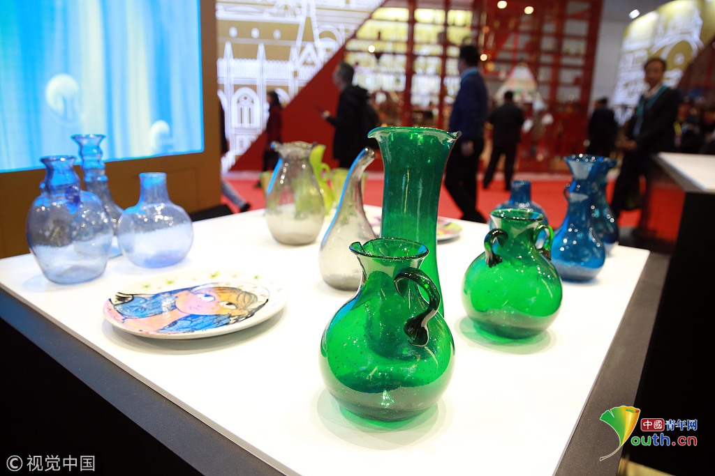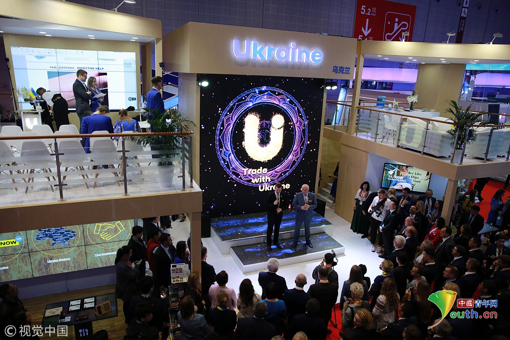 2018年11月6日,上海,首屆中國(guó)國(guó)際進(jìn)口博覽會(huì)國(guó)家展上,共有82個(gè)國(guó)家、3個(gè)國(guó)際組織設(shè)立了71個(gè)展臺(tái)。烏克蘭館新產(chǎn)品、新技術(shù)發(fā)布。視覺(jué)中國(guó)
