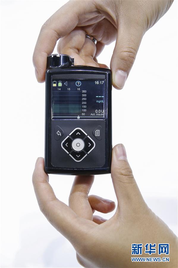 11月6日,美國(guó)美敦力公司工作人員展示采用智能算法的混合閉環(huán)胰島素泵。該產(chǎn)品能夠根據(jù)實(shí)時(shí)動(dòng)態(tài)血糖曲線調(diào)整基礎(chǔ)胰島素輸注,并且在低血糖事件發(fā)生前停止胰島素輸注,實(shí)現(xiàn)接近“人工胰腺”的功能。 新華社記者 張玉薇 攝