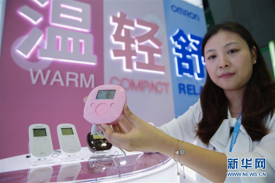 11月6日,日本歐姆龍公司工作人員展示首次在中國(guó)亮相的新款溫?zé)岬皖l治療儀。該款產(chǎn)品搭載國(guó)際疼痛學(xué)會(huì)定義的能有效緩解女性生理痛的按摩頻率。 新華社記者 張玉薇 攝