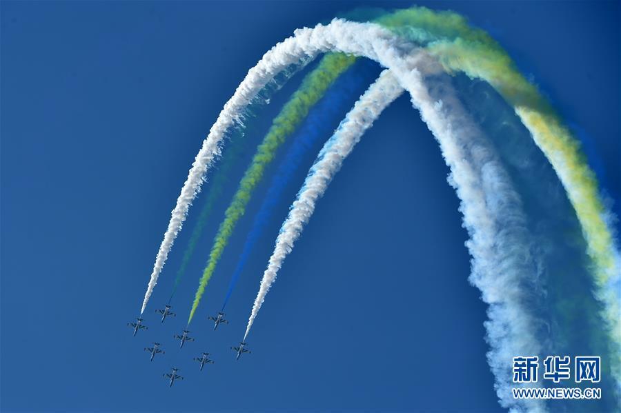 11月6日,空軍航空大學(xué)“紅鷹”飛行表演隊(duì)在航展現(xiàn)場(chǎng)進(jìn)行飛行表演。當(dāng)日,第十二屆中國國際航空航天博覽會(huì)在珠海開幕。 新華社記者梁旭攝