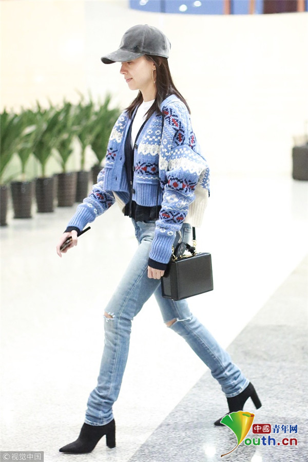 奚夢瑤一身帥氣牛仔裝 露細腰長腿顯 ...