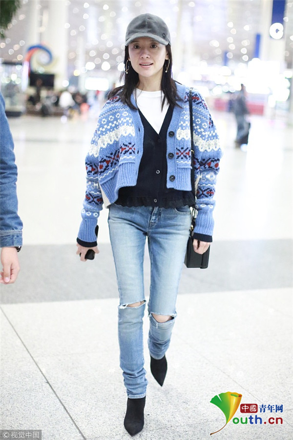 董潔素面朝天現(xiàn)機(jī)場(chǎng)