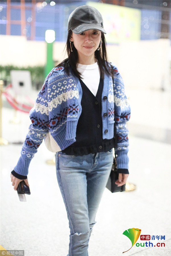 董潔素面朝天現(xiàn)身機場