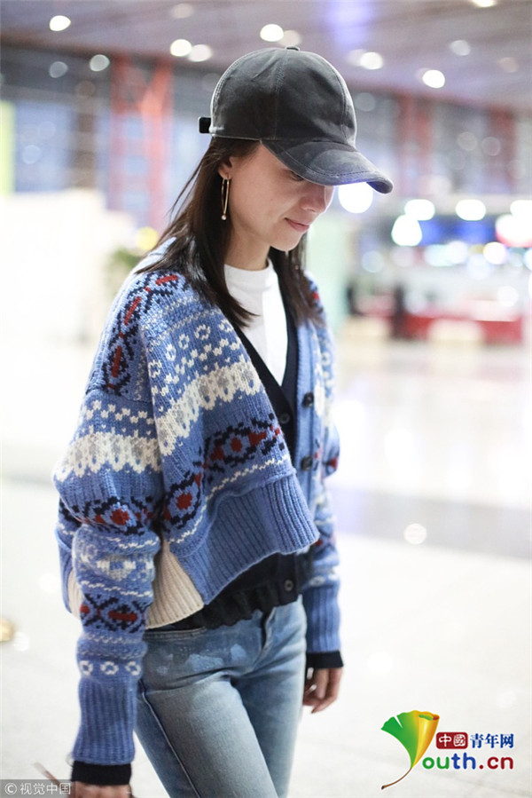 董潔素面朝天現(xiàn)機(jī)場