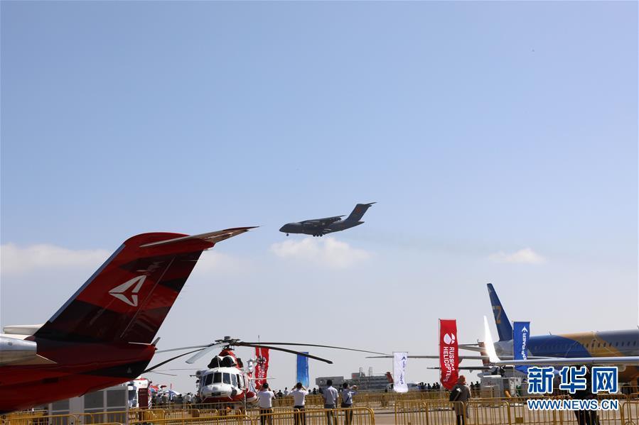 11月6日,中國空軍運-20飛機在航展現場進行飛行展示。當日,第十二屆中國國際航空航天博覽會在珠海開幕。新華社記者劉芳攝