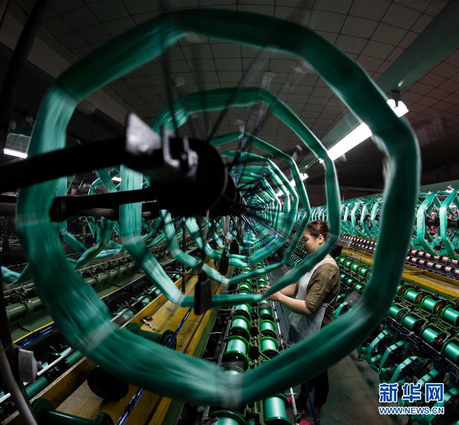 蘇州市吳江區(qū)盛澤鎮(zhèn)一家絲綢公司的工人在車間進(jìn)行絡(luò)絲作業(yè)(2017年5月20日攝)。 新華社記者 李響 攝