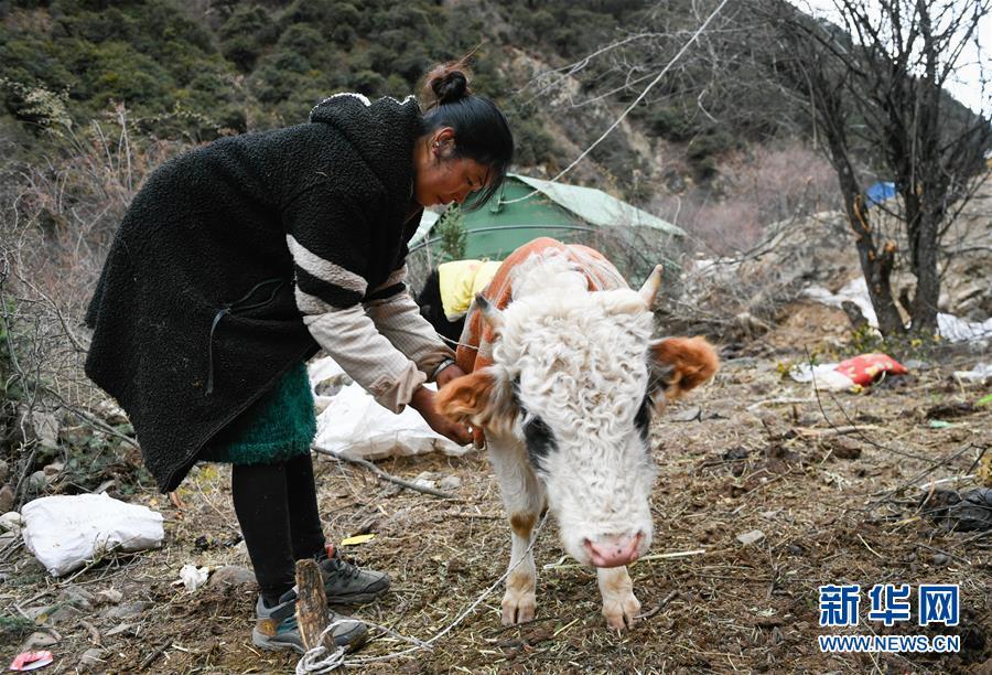在西藏昌都市江達(dá)縣波羅鄉(xiāng)境內(nèi)的康扎西安置點內(nèi),群眾在喂養(yǎng)小牛犢(11月11日攝)。 西藏自治區(qū)江達(dá)縣波羅鄉(xiāng)康扎西安置點,離波羅鄉(xiāng)政府直線距離約3公里,位于一處地勢開闊平緩的山谷中,比堰塞湖水面高出100多米。10月11日金沙江白格段山體滑坡發(fā)生后,當(dāng)?shù)鼐驮谶@里設(shè)立了安置點,安置附近受災(zāi)群眾。 新華社記者 劉東君 攝