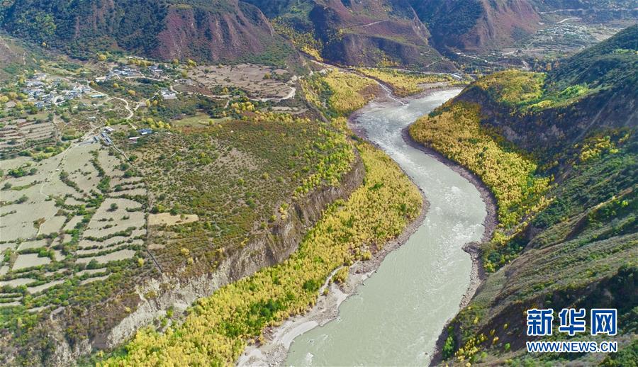 這是10月21日在西藏米林縣派鎮(zhèn)達林村拍攝的雅魯藏布江(無人機拍攝)。