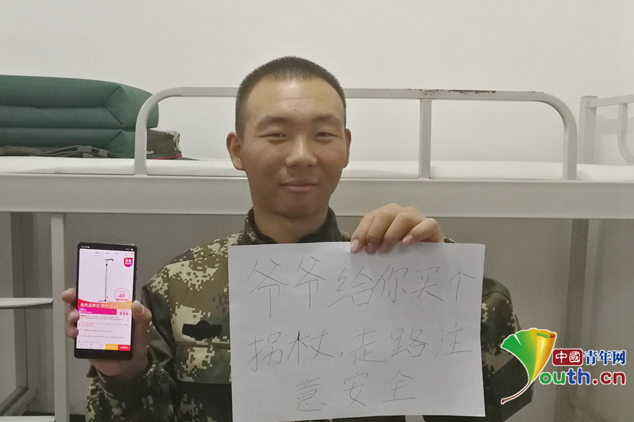 “爺爺年紀大了,走路有點不利索,給你買個拐杖,走路的時候一定注意安全。”武警北京總隊執(zhí)勤第二支隊供圖。