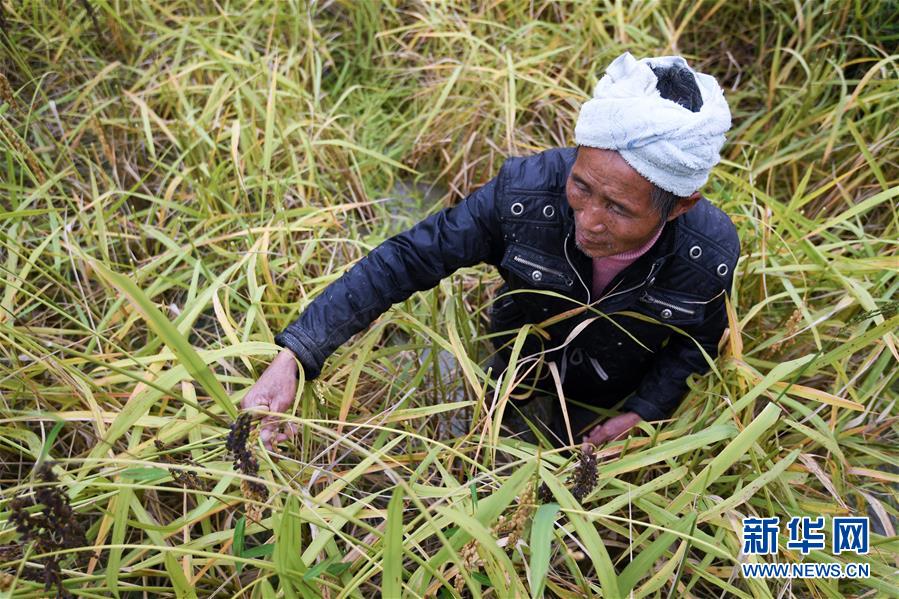 10月17日,在貴州省黔東南苗族侗族自治州從江縣高增鄉(xiāng)占里村,村民在收割香禾糯稻谷。 金秋時節(jié),農(nóng)民們忙著收獲成熟的農(nóng)作物,喜迎豐收。 新華社記者陳曄華攝