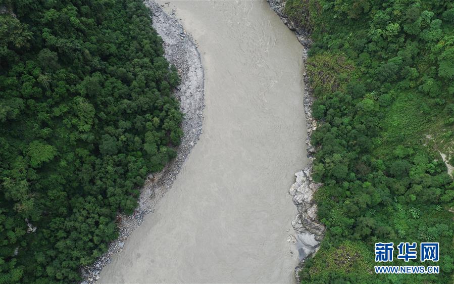洪峰過(guò)境后的西藏雅魯藏布江墨脫段局部畫(huà)面(10月20日無(wú)人機(jī)拍攝)。 新華社記者劉東君攝