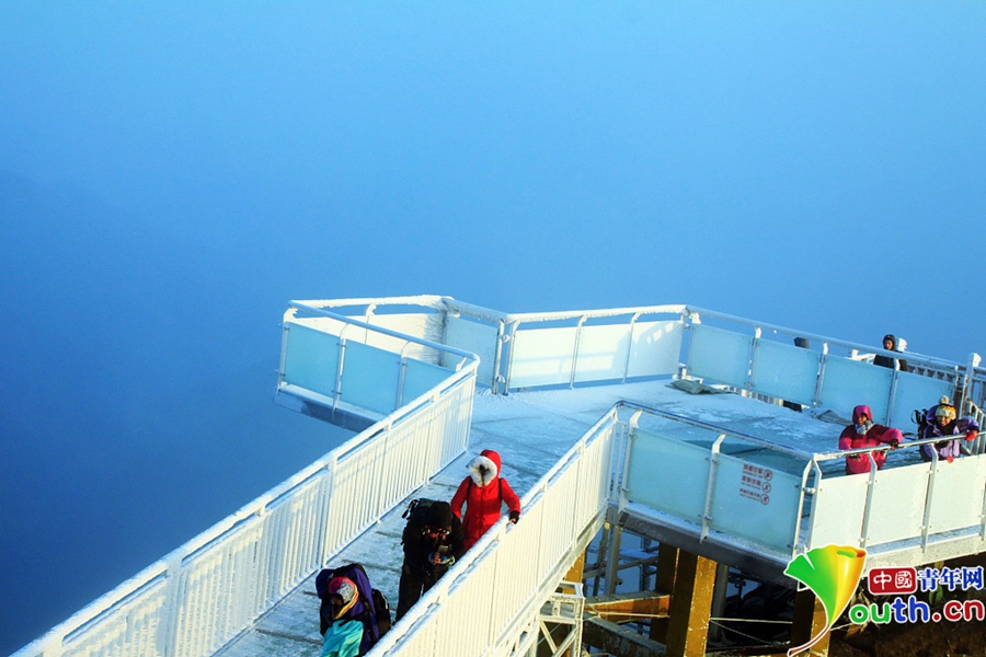 上到金子山最高峰可以看到,玻璃天梯像一條巨龍,沿著金子山最高峰山腰蜿蜒而上,每一個(gè)階梯都是玻璃做的,頂上是藍(lán)天白云,四周是莽莽群山,天梯下面是深不可測(cè)的懸崖絕壁?!?br/>