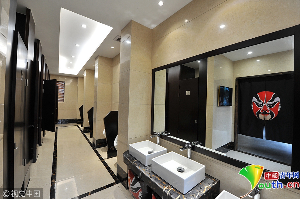 “第5空間”男女廁所的廁標(biāo)別具特色,選用京劇臉譜的形式,讓人充滿(mǎn)了新奇感。公廁內(nèi)設(shè)有母嬰室,里面安裝了各類(lèi)為帶嬰兒的媽媽們上廁所提供便利的設(shè)施,除洗手池和供兒童、成人專(zhuān)用坐便器外,還有折疊式的嬰兒座椅和護(hù)理臺(tái),這樣帶嬰兒的媽媽進(jìn)來(lái)如廁,就可以把孩子安全地放在椅子上;如果孩子需要換尿布,也可以在護(hù)理臺(tái)上完成?! ?/p>
