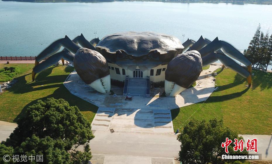 據(jù)了解,這是建造中的大閘蟹生態(tài)館,預(yù)計(jì)未來將在大閘蟹的白肚內(nèi)容納三層空間,集休閑、娛樂,以及有關(guān)大閘蟹體驗(yàn)于一體的設(shè)施。圖片來源:視覺中國