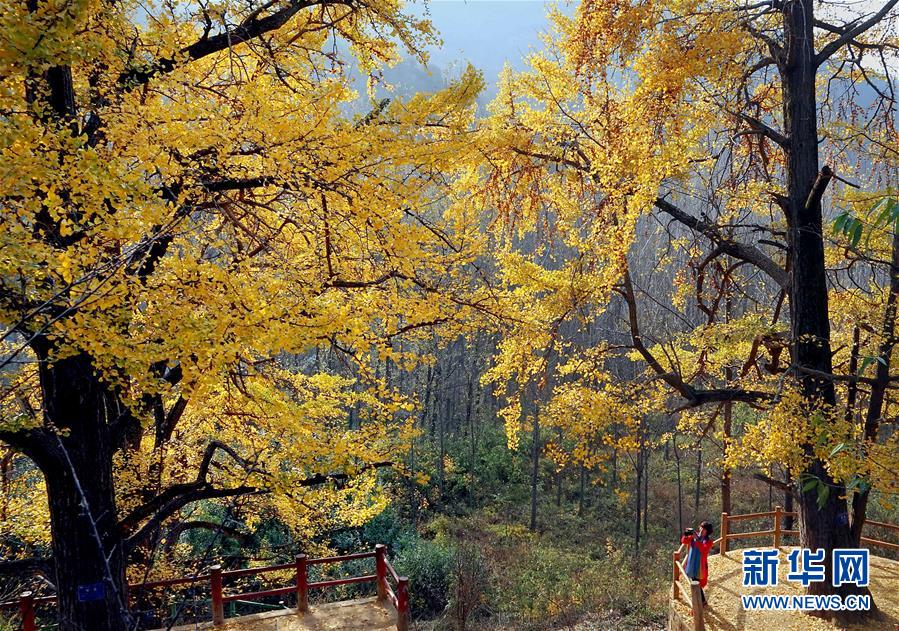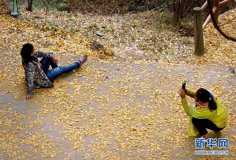 11月1日,游客在河南省嵩縣白河鄉(xiāng)下寺村古銀杏樹下拍照。 深秋時(shí)節(jié),河南省嵩縣白河鄉(xiāng)下寺村的古銀杏林為小山村披上了“金甲”。漫天黃葉,遍地金色,一幢幢民居掩映在色彩斑斕的世界里,美不勝收,吸引了眾多游客賞景拍照。 新華社記者 李安 攝
