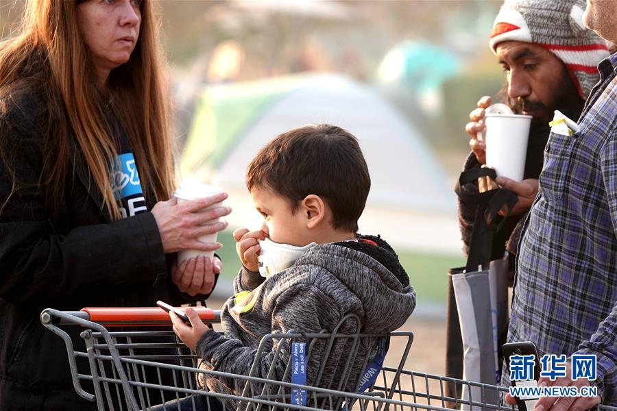 11月18日,在美國(guó)加利福尼亞州比尤特縣奇科,災(zāi)民在沃爾瑪停車(chē)場(chǎng)暫居。 新華社記者吳曉凌攝