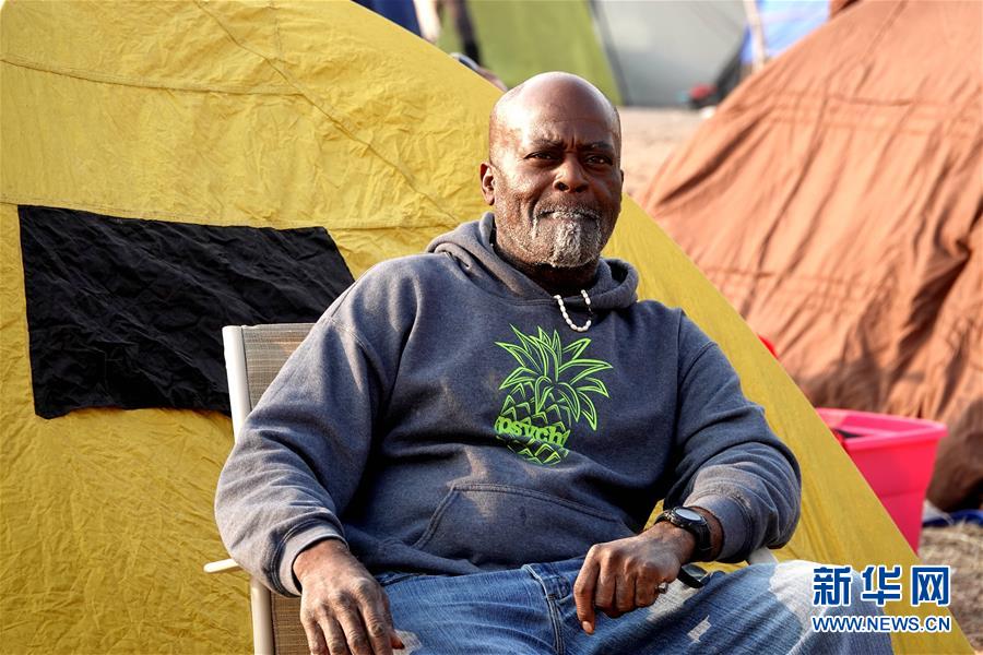 11月18日,在美國加利福尼亞州比尤特縣奇科,災民在沃爾瑪停車場搭起帳篷暫居。 新華社記者吳曉凌攝