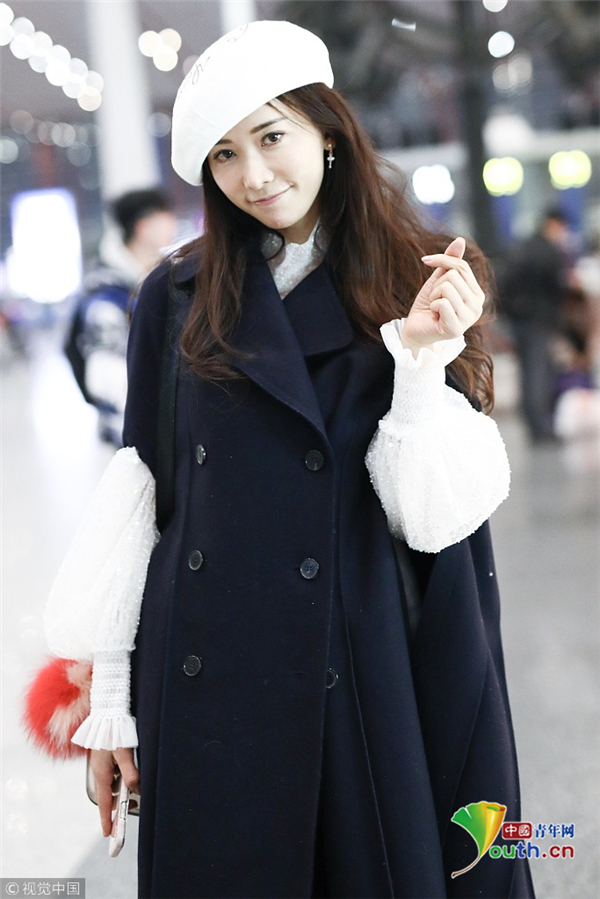 11月19日,北京,林志玲現(xiàn)身機(jī)場,林志玲穿黑色大衣配貝雷帽溫暖俏皮,揮手賣萌露修長美腿女神氣質(zhì)爆棚。