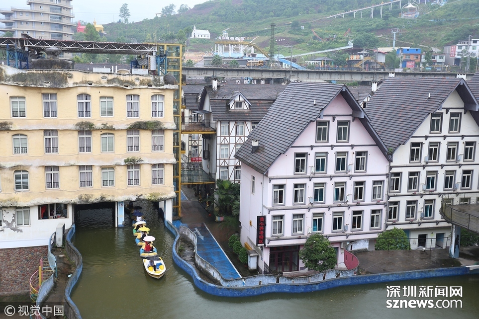 2018年6月20日,重慶涪陵,紅酒小鎮(zhèn)人工運河全長近5公里,2009年開建,先期依梨香溪岸線而建,后期隨著景區(qū)的發(fā)展,運河逐漸拓展為高架橋的“空中運河”,穿樓而過的“室內(nèi)運河”,穿水上樂園而過的“水中運河”。為確保一個水平面,運河見房穿洞,過路搭橋,游客乘坐觀光船或蕩舟其中成為一道獨特的風景線。隨著8D魔幻重慶的不斷走紅,該景區(qū)的網(wǎng)紅運河正受到游客的喜愛與“打卡”。