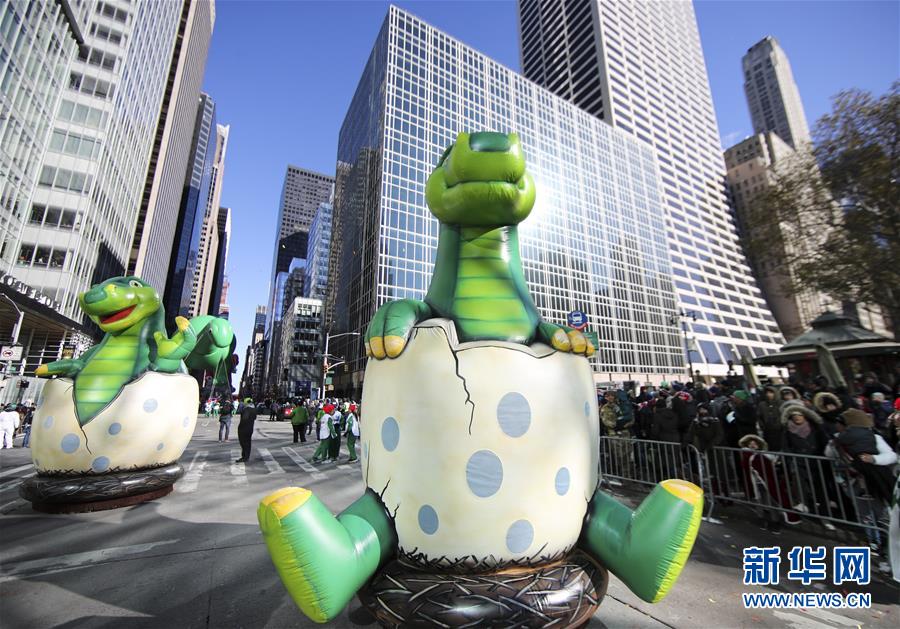 11月22日,在美國紐約感恩節(jié)大游行上,“恐龍寶寶”造型氣球車行進(jìn)在曼哈頓街頭。