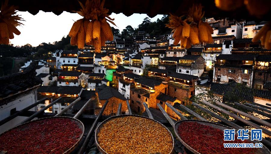 這是黃昏中的篁嶺古村(10月25日攝)。近日天氣晴朗,江西省婺源縣江灣鎮(zhèn)篁嶺村村民抓住時(shí)機(jī)采摘、晾曬皇菊及蔬果。明黃的菊花、火紅的辣椒……各種顏色將篁嶺古村裝扮成巨大的“調(diào)色板”,引來(lái)眾多游客感受鄉(xiāng)村美景。新華社記者宋振平 攝 |