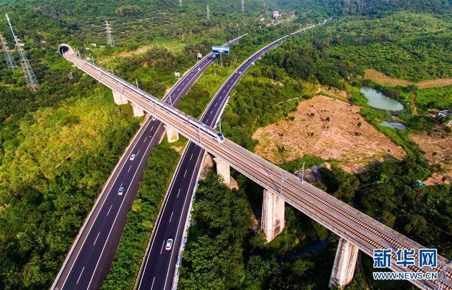 這是2016年10月11日無(wú)人機(jī)拍攝的海南環(huán)島高鐵東線三亞段。新華社記者 楊冠宇 攝