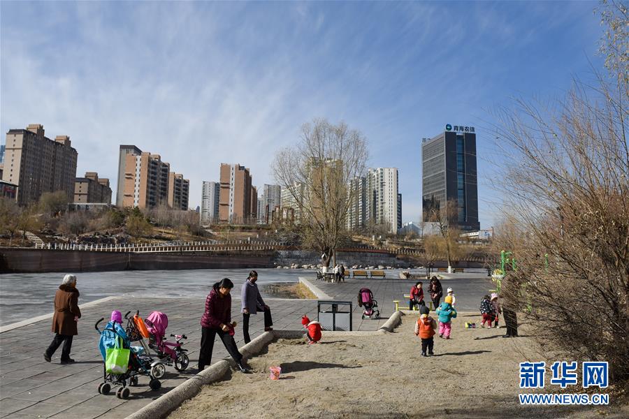 11月28日,幾名市民帶著孩子在西寧市海湖新區(qū)的公園內(nèi)游玩。  新華社記者 吳剛 攝