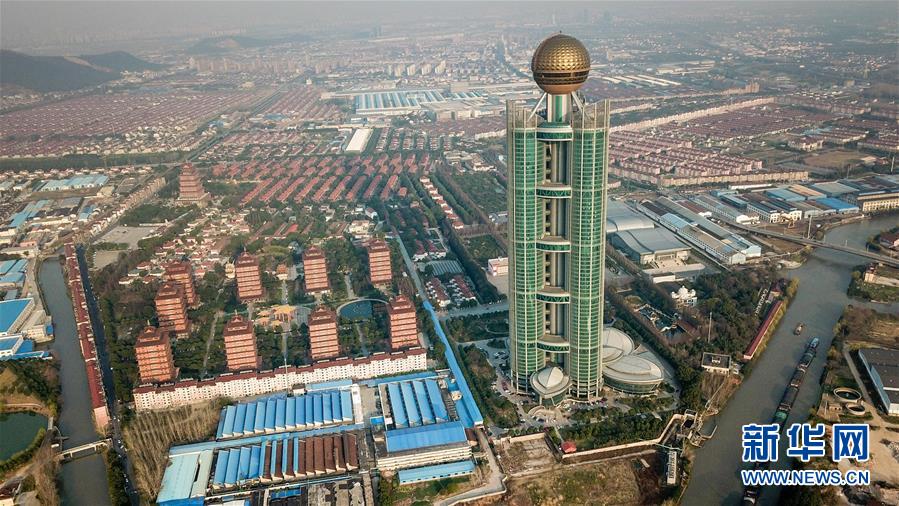 江蘇省江陰市華西村一景(3月13日無人機拍攝)。 新華社記者 李博 攝