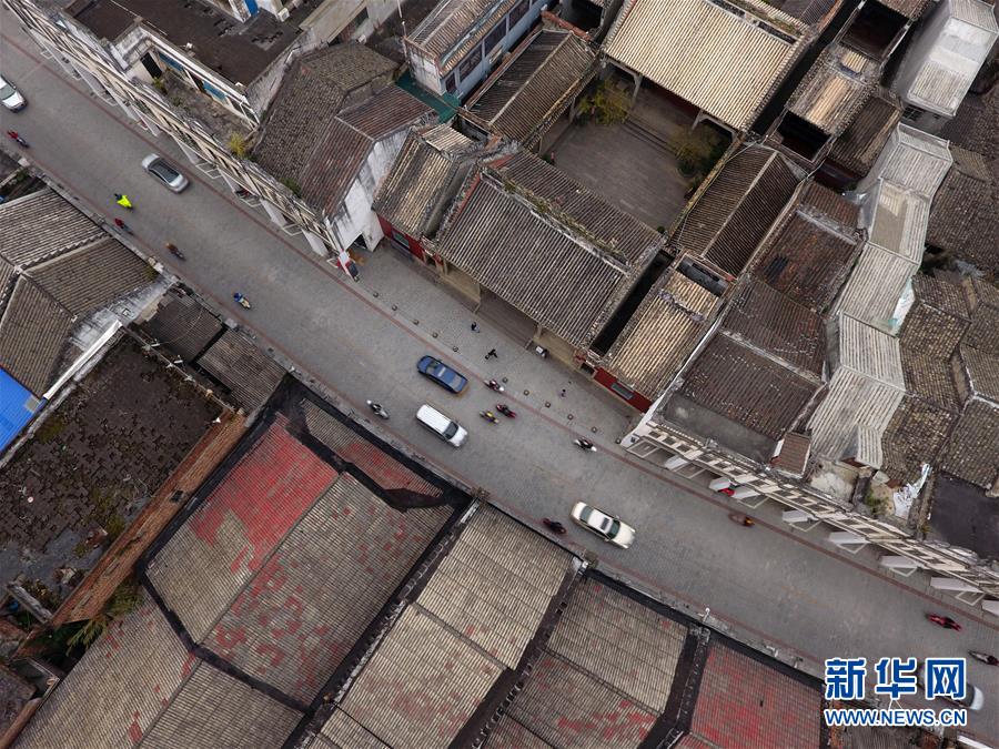 這是廣西百色市解放街上的粵東會館(右上)及周邊老建筑(11月27日無人機拍攝)。 新華社記者 陸波岸攝