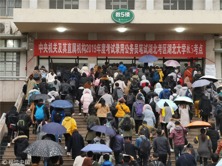 2018年12月2日,湖北武漢一公務(wù)員考點,密密麻麻的考生進向考場。當日,2019年度中央機關(guān)及其直屬機構(gòu)公務(wù)員招考筆試開考。楚林/視覺中國