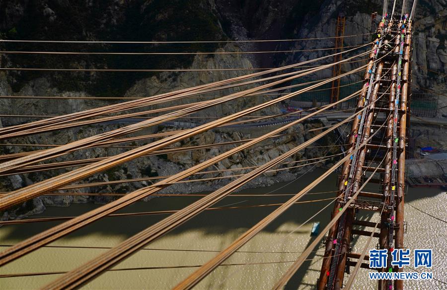 9月28日拍攝的川藏鐵路拉林段重點(diǎn)標(biāo)志性工程藏木特大橋合龍儀式現(xiàn)場(chǎng)。 當(dāng)日,隨著最后一節(jié)鋼管拱的對(duì)位和鎖定完畢,川藏鐵路拉林段藏木特大橋成功合龍,標(biāo)志著大橋主體結(jié)構(gòu)施工取得了關(guān)鍵性勝利。藏木特大橋由中國(guó)中鐵廣州局集團(tuán)承建,拱高112米,橋橫跨雅魯藏布江峽谷,水深66米。 新華社記者普布扎西攝
