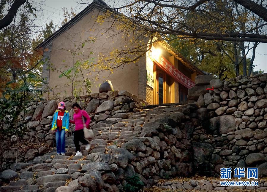 10月31日,在河南省嵩縣白河鄉(xiāng)下寺村,游客走出一家客棧。 深秋時節(jié),河南省嵩縣白河鄉(xiāng)下寺村的古銀杏林為小山村披上了“金甲”。漫天黃葉,遍地金色,一幢幢民居掩映在色彩斑斕的世界里,美不勝收,吸引了眾多游客賞景拍照。 新華社記者 李安 攝
