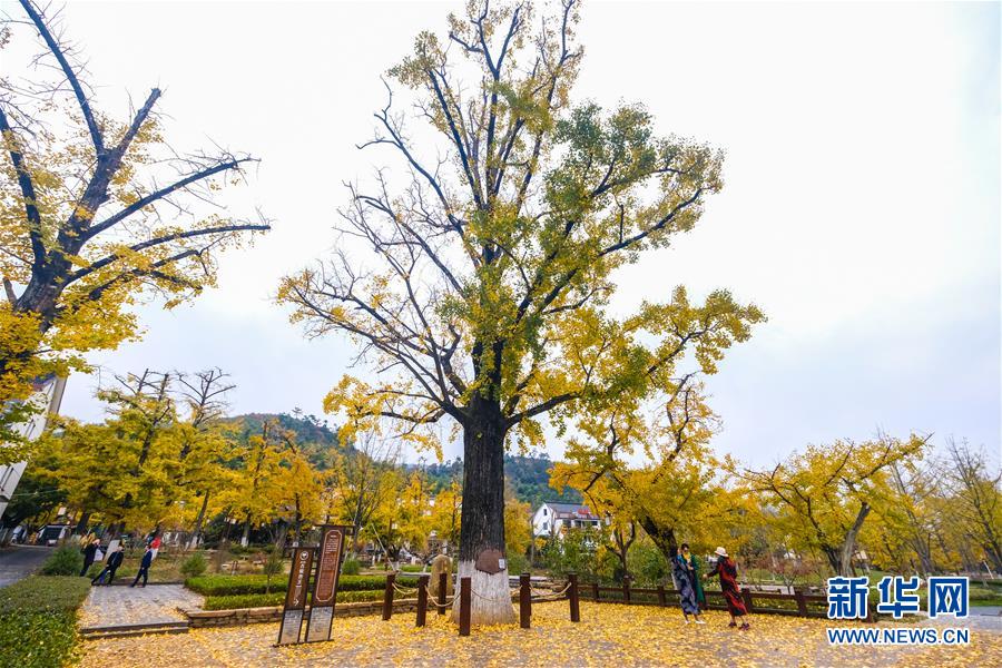 11月1日,游客在河南省嵩縣白河鄉(xiāng)下寺村古銀杏樹下拍照賞景。 深秋時節(jié),河南省嵩縣白河鄉(xiāng)下寺村的古銀杏林為小山村披上了“金甲”。漫天黃葉,遍地金色,一幢幢民居掩映在色彩斑斕的世界里,美不勝收,吸引了眾多游客賞景拍照。 新華社記者 李安 攝